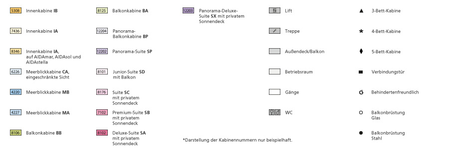 Kabinengröße 49 - 61 qm 16 - 25 qm Balkon bis zu 4 Personen Kategorie SB