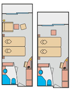 Kabinengröße 14 - 16,5 qm bis zu 4 Personen Kategorie MA, MB, CA* * Sichteinschränkungen durch Rettungsboot in der Kategorie CA
