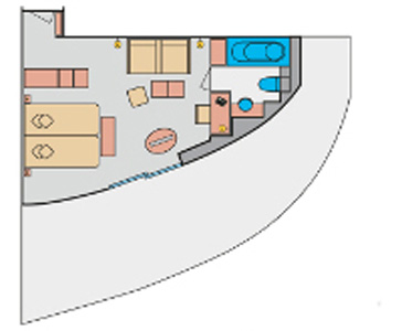 Kabinengröße ca. 56-87 qm inklusive separatem Sonnendeck ca.12 - 50 qm Balkon bis zu 4 Personen Kategorie SA