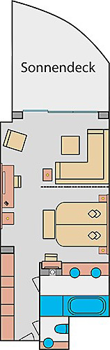 Suiten auf AIDAprima sind verfügbar als Junior-, Panorama-, Premium- und Deluxe-Suite mit 40-125 qm inklusive privatem Sonnendeck (12-82 qm).